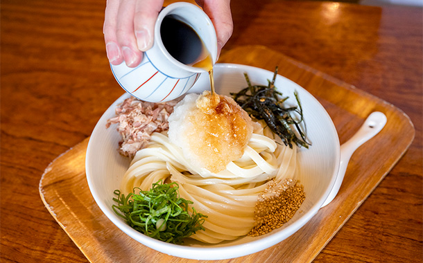 100年以上の歴史を誇る、太く力強いコシのある麺が自慢の手打ちうどん店。牛ホルモン入りのつけ汁、揚げたての天ぷらやおろしぶっかけも人気。素朴ながら奥深い味わいでボリュームも十分。ドライブ途中のお食事にぴったりです。