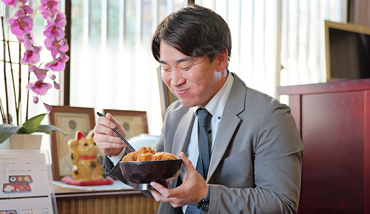 上尾支店と同じ道沿いにある福乃家さんは、当店スタッフを含め、地域の人たちのお腹を満たしてきたそば処です。「何より満足して帰ってもらいたい」という想いから、メニューはどれもボリュームたっぷり。中でもオススメしたいカツ丼は、カツの分厚さが圧倒的です。気取らず、しっかりお腹いっぱいになれる大好きなお店です!