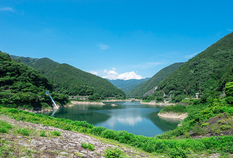 奥武蔵の山あいにたたずむダム湖。巨大な堤体の向こうには、湖面が青く輝き、空と山々が映り込む絶景が広がります。春は新緑、秋は紅葉と、四季折々の美しさが楽しめるので、カメラを持って立ち寄りたいスポットです。