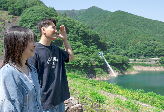堤体からダムと自然が織りなす風景を楽しむことができます。