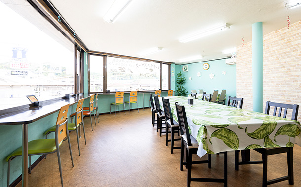 2階のイートインコーナーで景色を眺めながらゆったりと食事を楽しめます