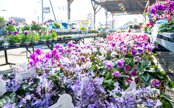 花苗や観葉植物、ガーデン雑貨がそろう大型園芸店。季節の草花に囲まれた空間は、見て歩くだけでも心が和みます。庭づくりの相談はもちろん、旅の途中に自然のぬくもりを感じられる癒やしの立ち寄り処です。