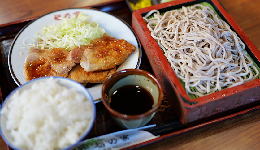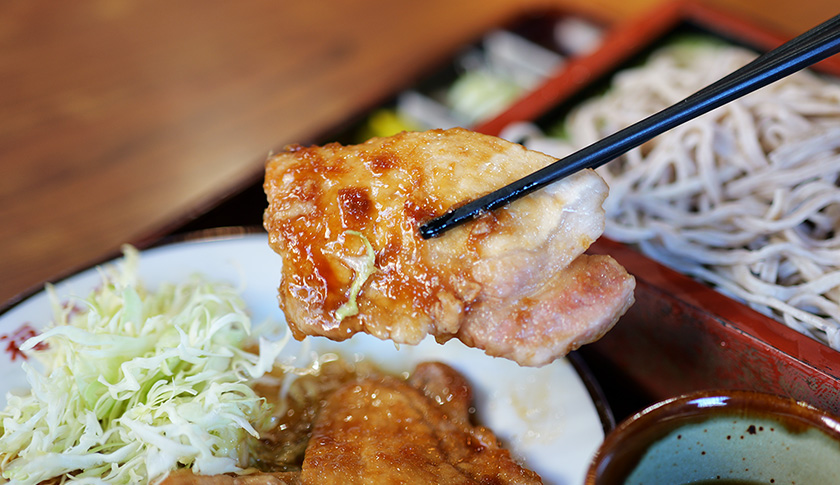 お蕎麦かうどんを選べるボリューム満点の生姜焼 定食(1,200円 税込)