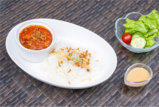 こだわりの料理が楽しめる、落ち着いた雰囲気のカフェレストラン。パスタやカレー、お茶漬けから中華料理まで幅広いジャンルのメニューを味わうことができます。