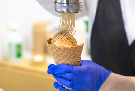 併設のカフェでは、見た目も華やかなスイーツを楽しめます。体験の余韻にひたりながら、ゆったりとした時間を過ごしましょう。散策途中のひと休みにもおすすめです。