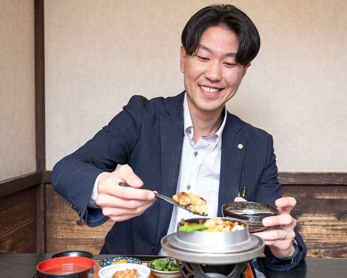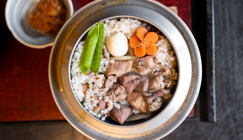 明治31年創業。老舗ののれんを継いだ四代目・竹村様は、先代の引退を機に数あるメニューの中から釜めしに着目し、専門店として新たな一歩を踏み出されました。一釜ずつ丁寧に炊き上げる釜めしは、素材の旨みと出汁が調和した奥深い味わいです。