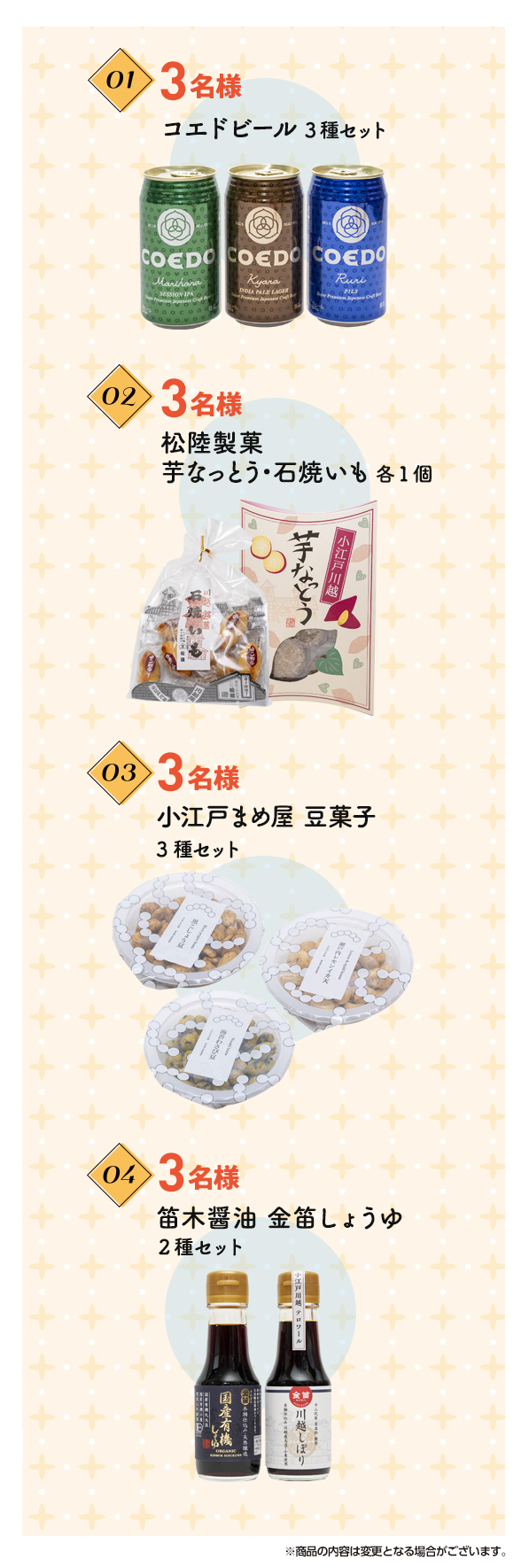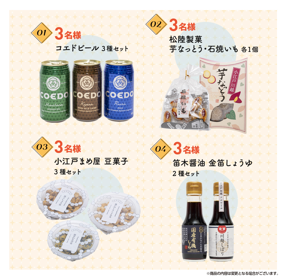 プレゼント内容 1.コエドビール3種セット 3名様